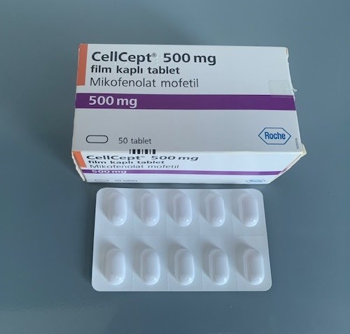 Thuốc Cellcept 500mg hộp 50 viên với hoạt chất Mycophenolate mofetil, là một chất ức chế chọn lọc men Inosine Monosphosphat Dehydrogenase (IMDH). Có tác dụng ức chế hệ thống miễn dịch của cơ thể, ngăn cản cơ thể đào thải tác nhân lạ là những mảnh ghép mới được đưa vào cơ thể sau khi ghép thận, gan, tim ...