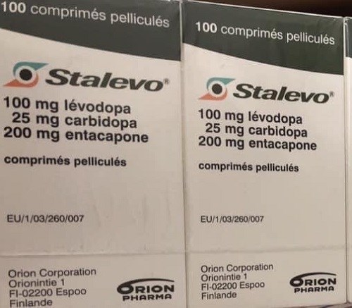 Thuốc Stalevo 100/25/200mg hộp 100 viên là sự phối hợp giữa 3 hoạt chất levodopa, carbidopa và entacapon được dùng để điều trị bệnh Parkinson khi bệnh nhân không đáp ứng với liều levodopa thông thường