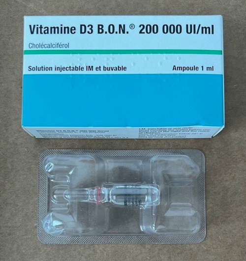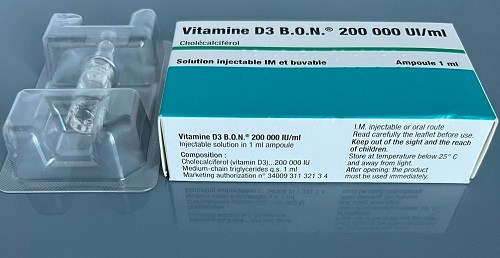 Thuốc D3 B.O.N 200.000UI/ml hộp 1 ống với hoạt chất Cholecalciferol, thường được dùng để phòng ngừa và điều trị các bệnh do thiếu hụt Vitamin D3 như: còi xương, nhuyễn xương, trẻ em chậm lớn, châm biết đi, chân vòng kiềng, chứng co giật do thiếu canxi, co giật do suy tuyến giáp